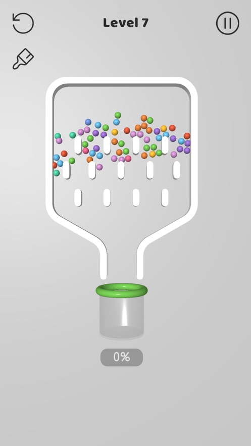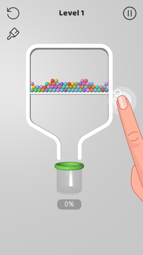 别针大师是一款充满挑战的休闲类游戏,游戏具有小清新画风的关卡和场景设定,你可以通过简单快捷的操作模式参与关卡挑战,将所有带颜色的小球顺利掉入瓶子中即可获得最终的胜利,比较考验大家的思维能力。