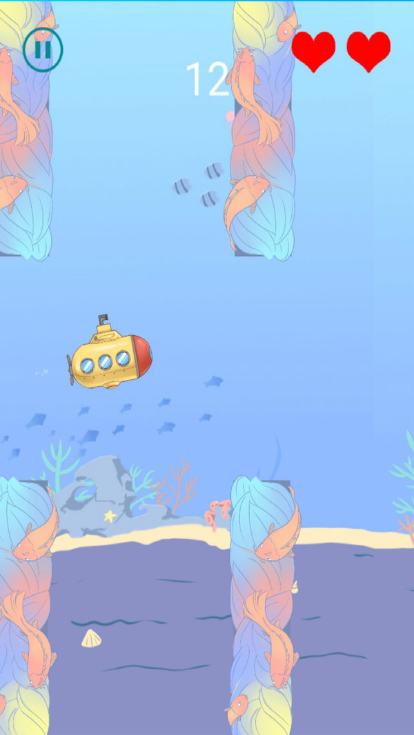 潜水艇游戏是一款抖音比较热门的休闲游戏,在游戏中玩家需要通过手指的点击控制潜水艇上下移动,不断地向前加速躲避开珊瑚礁等障碍物的阻挡,向着目标重点加速前行争取获得高额的分数效果。