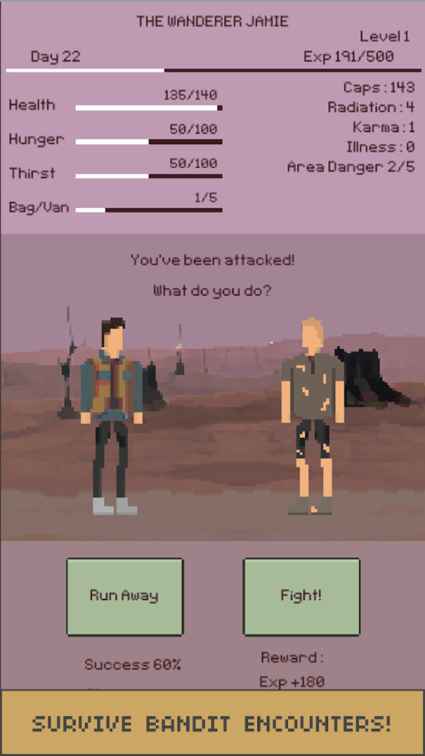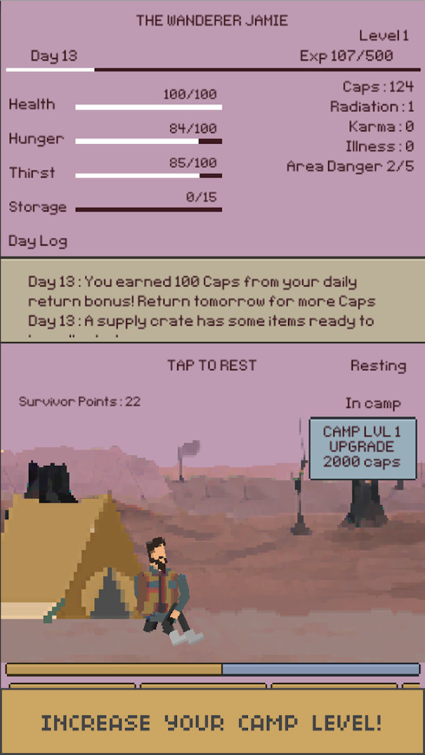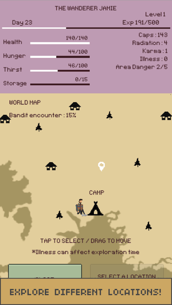 求生流浪者是一款好玩的文字题材生存冒险游戏,游戏具有简约的画风,在这个精心打造的世界中你需要在四周收集各种有用的道具和材料,打造专属的武器和装备抵抗到来的敌人,顺利的在整个荒岛之上生存下去。