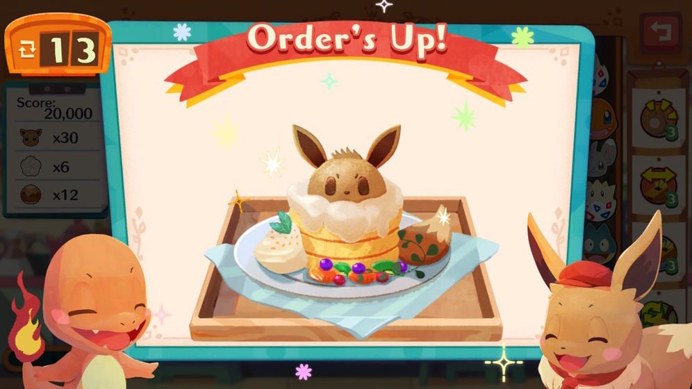 3、在关卡之中随着游戏的不断深入还可以建造专属的咖啡厅,并快速的吸引各种不同的宝可梦品类轻松畅玩;