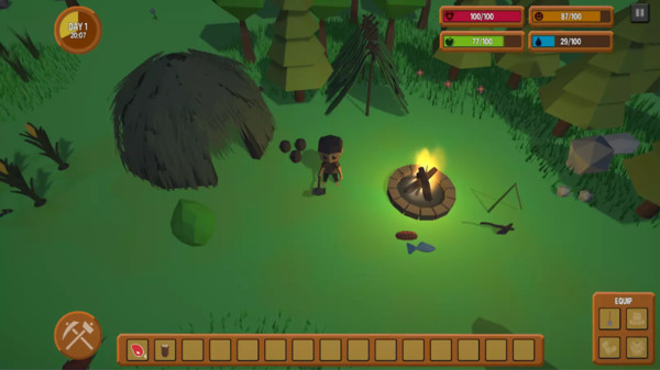 -找到水源并制作火把,远离危险的动物,您可以与它们搏斗,保持安全,使用各种动物行为进行狩猎;