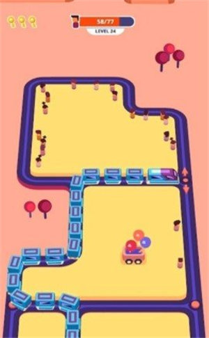 休闲趣味类的模拟闯关,非常好玩的趣味类的益智闯关不断的让自己的火车变长;