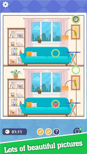超级拼图差异是一款非常休闲有趣的模拟闯关类的游戏,这款游戏当中的所有的画面场景内容都是十分的休闲过瘾的,完成关卡当中的所有的任务来收集超级多家具,来寻找出超级多的道具来进行趣味类的闯关吧。