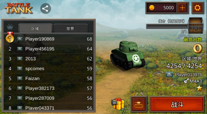 战斗坦克是一款3D写实风格的坦克战斗游戏,由物理引擎打造的极致高清画质场景,流畅的射击战斗感,为玩家呈现了一个精彩绝伦的战场冒险世界,各种各样的坦克轻松获取,喜欢的小伙伴赶快一起玩吧!