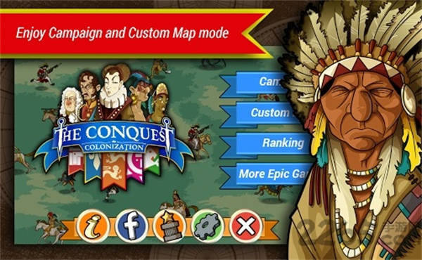 征服殖民地最新版是一款非常经典的策略战争类的游戏,游戏以美国发现新大陆殖民印第安人那段时间为背景,玩家可以自由的选择国家来发展跟印第安人达成盟友关系,不断地发展壮大然后去征战入侵其他的国家,殖民他们。