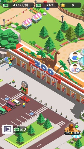 2、可以自由的使用资源来发展扩大动物园的面积,解锁更多的动物,吸引更多的顾客;