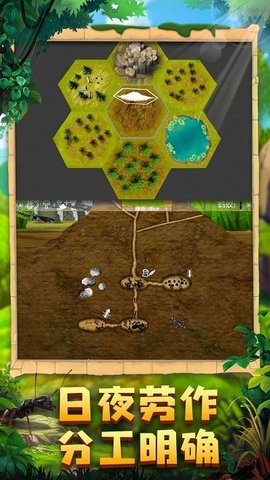 2、游戏内有很多的不同种类的蚂蚁可以操控,玩家要将它们进行合理的分工;