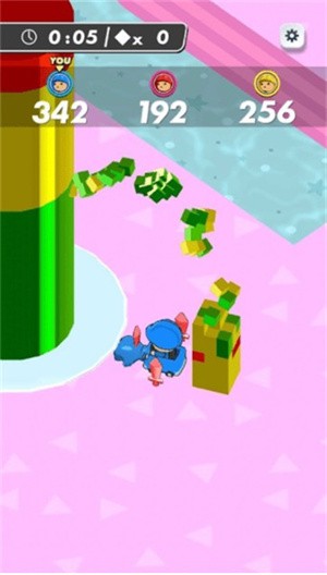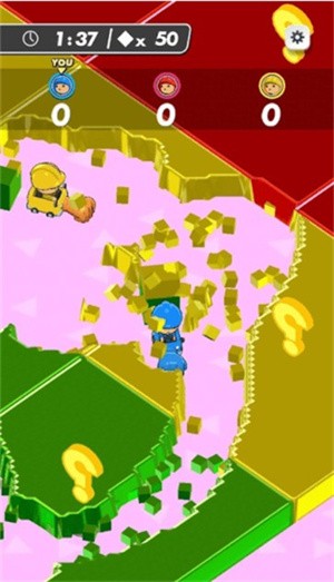 2、通过操控小人去收集场景内的各种各样的果冻来获取积分超越其他小人获得胜利;