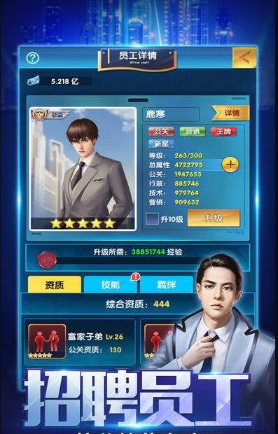 新晋亿万总裁手游下载是一款精彩有趣的模拟经营类手游,精致逼真的游戏画面,玩家将扮演一名投资大佬,通过各种商业手段,进行精准的投资,努力招募更多的人才来发展自己的事业!