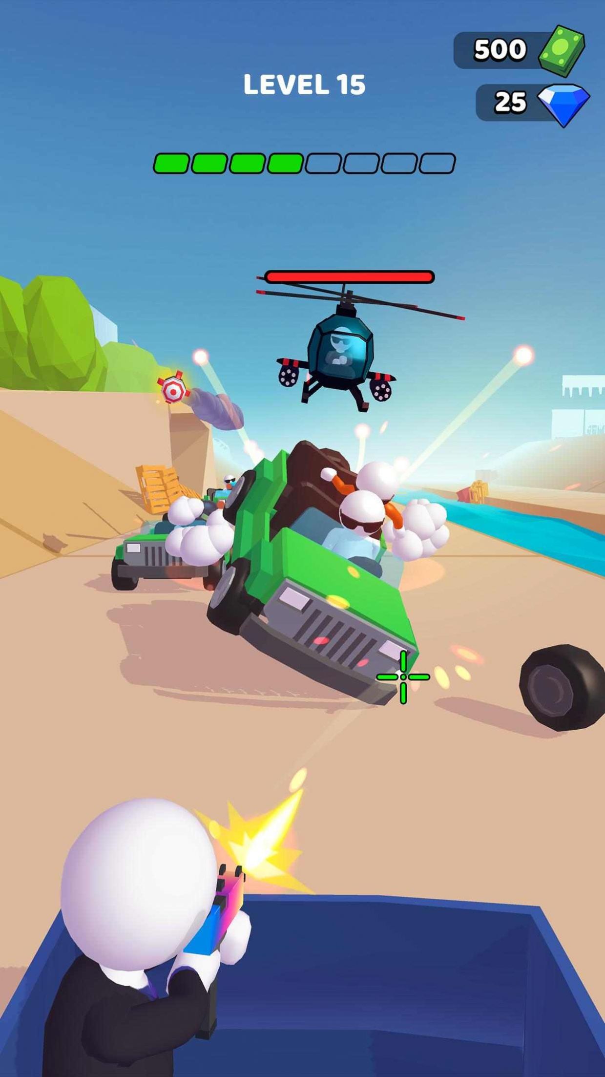 小白人枪战是一款画风设计的很精致的卡通风格的休闲闯关的游戏,在游戏中玩家可以自由的操控着自己的角色在不同的闯关场景里面进行刺激过瘾的战斗,超多的不同的武器装备可以获取,去射击各种各样的载具完成闯关。