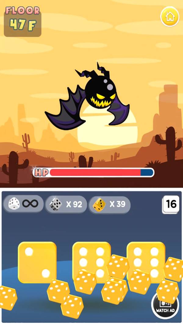 1、很有趣的地牢冒险闯关玩法的游戏,利用骰子来进行攻击闯关;