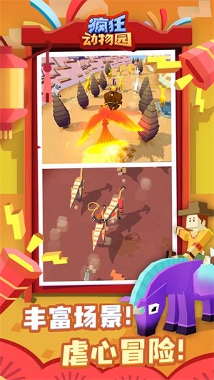 疯狂动物园(Rodeo Stampede)是一款集3D像素、急速跑酷和模拟养成为一体的休闲小游戏。在游戏中你将扮演一名富有冒险精神的绝世牛仔。在高速移动的情况下与各种动物一较高下。你要尽可能多的套住动物,将它们统统带回飞船上的“空中动物园”中饲养;并进行园区升级,以便迎来世界各地的游客光临赚取更多金币。