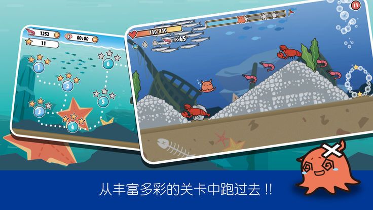 在这片深邃的海洋世界和章鱼一起来见证更大的冒险,的关卡你可以来尽情的挑战,你需要解锁全部的角色才能够完成伟大的梦想之旅,强化所有动物的技能让你一起来完成所有的挑战,你可以在海底之中来抓取更多的虾。