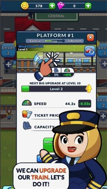 4、去不断的升级你的火车来去解锁很多新的城市的,是能够在这里去更好的提升火车的速度的,快来吧。
