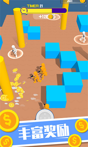 5、升级你的队友--使用获得的金币来强化队友的数量、攻击力和生命值,让他们变得更强大,成立更强大的火柴人反恐队伍。