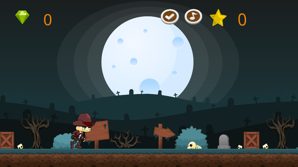 死亡之地逃亡最新版里玩家扮演的牧童被困在了死亡之地。有很多危险的敌人,比如奔跑的骷髅,奔跑的僵尸,会伤害牛仔的死动物。你必须帮助那个奔跑的牧童从这片死土地上逃出来,收集所有类型的硬币,以打开新的游戏水平!