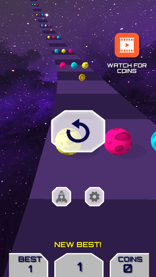 空间色彩是一款十分具有挑战感的休闲游戏,游戏有着十分鲜艳的视觉效果,五彩斑斓的色彩小球障碍和角色,特色的小球跑酷闯关玩法,玩家操作小球在不同的场景关卡里进行收集金币和道具躲避障碍,获得高分完成挑战!