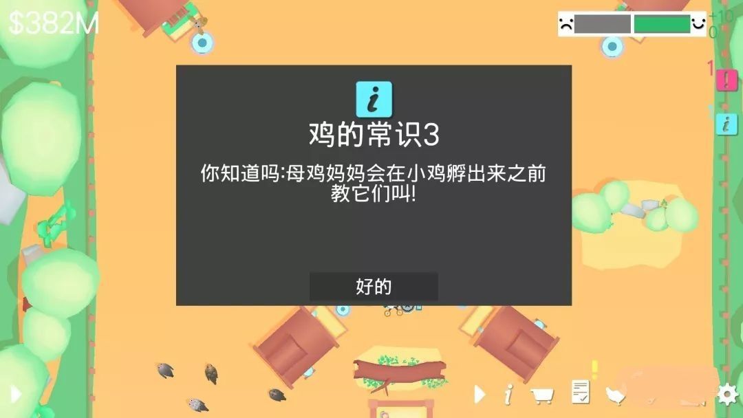 一款画风Q版卡通的有关养鸡的农场模拟经营类游戏,学习更多养鸡知识;要想成为优秀的养鸡场主人,你必须充分照顾到小鸡们身体和心理健康;建造安全又巩固的鸡棚让小鸡们住的安心,观察他们的成长情况,生更多的蛋。