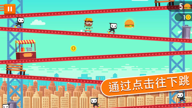 点击滑冰者踩着自己的滑板去完成各种任务和冒险,快速的通过陡斜的下坡,躲避各种障碍和危险,收集金币。在游戏商城里可以用金币购买各种样式的角色人物,每一个角色都会有着自己的特殊能力哦,合理的利用好能力是快速过关的诀窍!