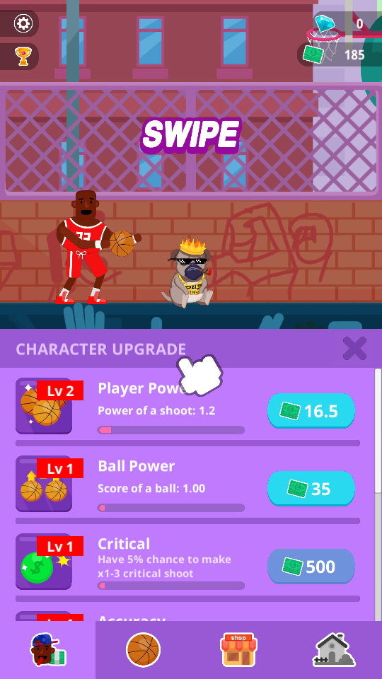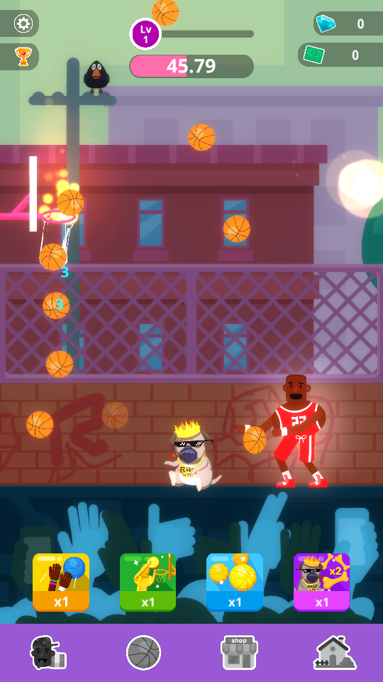 灌篮派对是一款超级休闲的无聊点击游戏。成为一个传奇篮球运动员,享受投球的乐趣,成为最棒的篮球运动员,许多不同的球场设计5个不同的球场可以体验,可以挑战目标分数并解锁许多漂亮的皮肤!
