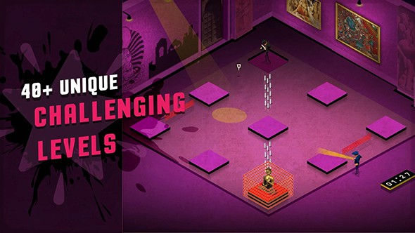 在这个藏满珍宝的博物馆中充满了警卫、探照灯、尖刺以及红外线,身为一名小偷你需要灵活躲避开各种机关同时解开宝藏身上的重重陷阱。游戏包含40个极富挑战的关卡,你会随着游戏的进行而变得不能自拔,享受解谜盗宝的乐趣!