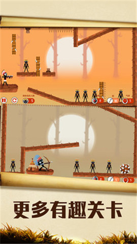 暴击火柴人安卓版点击屏幕控制射击方向,掌握箭头下落的位置,瞄准敌人顺利击杀则闯关成功!这是一款有趣的火柴人休闲游戏。游戏画风简约,玩法趣味十足,喜欢的小伙伴赶快来下载体验吧!