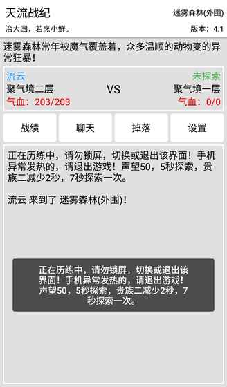安卓下载 大小:3.78MB 下载:402次 天流战纪 益智休闲 支 持:安卓 分 类:手机游戏 大 小:3.78MB 版 本:4.1 下载量:402次 发 布:2022-03-25 13:28:38 特 色:天流战纪游戏下载_天流战纪最新版下载 安卓下载 #天流战纪截图 #天流战纪简介 天流战纪是一款简单有趣的文字休闲武侠游戏,游戏拥有着超长丰富的剧情故事等你体验,多元化的武侠修仙元素,凌天洞府、宗门门派、秘境世界等应有尽有,简单的游戏玩法让你体验修仙的快感!游戏特色1、简单有趣的游戏玩法,所有玩家都可以轻松享受游戏乐趣!2、极简的画面美术风格,简约而不失精美!3、多元化的游戏玩法,让你感受到极致的武侠世界!4、丰富多彩的武侠剧情故事引人入胜,给你沉浸式的游戏体验!编辑推荐在这个世界存在着,未知,妖兽、种族、秘境、失落的传承、未知的地域,这些奇妙的存在令人渴望又畏惧。在吸引人们冒险,开启你自己的传奇,你准备好了吗?