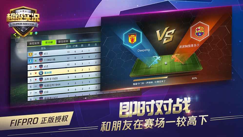 《超级实况》是一款全新即时操控足球竞技手游,拥有FIFPro官方授权。畅爽的操控体验,顶级品质3D球员模型,2000+球员动作采用真人模拟动态捕捉,真实的物理碰撞与受力反馈,沉浸式视觉感官为你还原激燃的绿茵赛场!