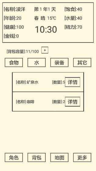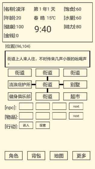 《流浪人生2命运》是游戏商凌洋工作室开发的一款文字类型的模拟RPG游戏,游戏中,玩家将扮演流浪者,你需要对着自己的人生进行选择,合理安排自己的生活,努力生存下去,并找回自己的记忆。