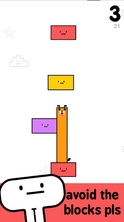 一款画面简约的跳跃闯关类手机游戏,多样性的玩法挑战,解锁各种各样可爱的小动物准备开始冒险,丰富的场景解锁,玩家需要控制超可爱的小动物踏上冒险的旅程,轻松的闯关历险,这是一个依靠脖子去跳跃的游戏。