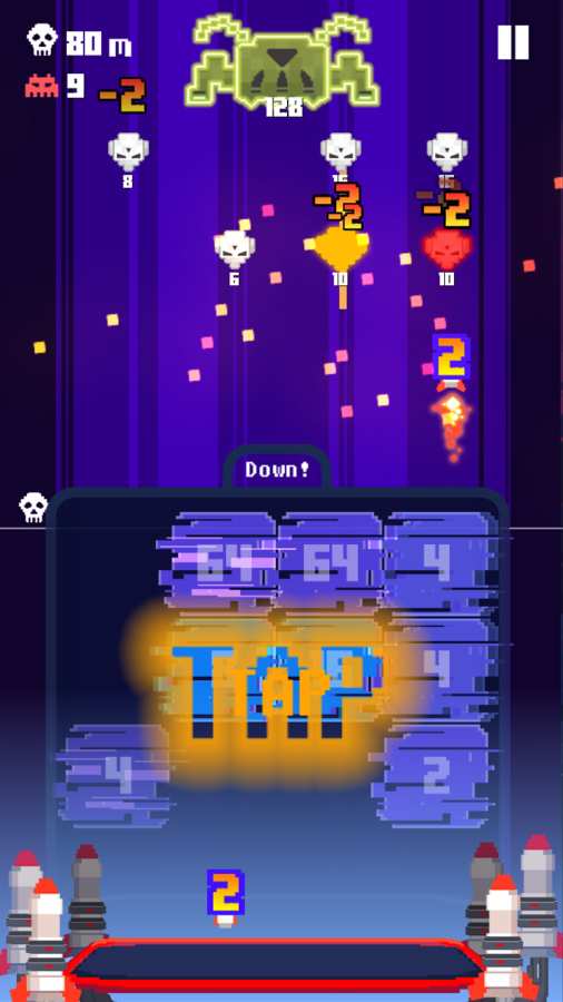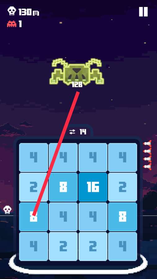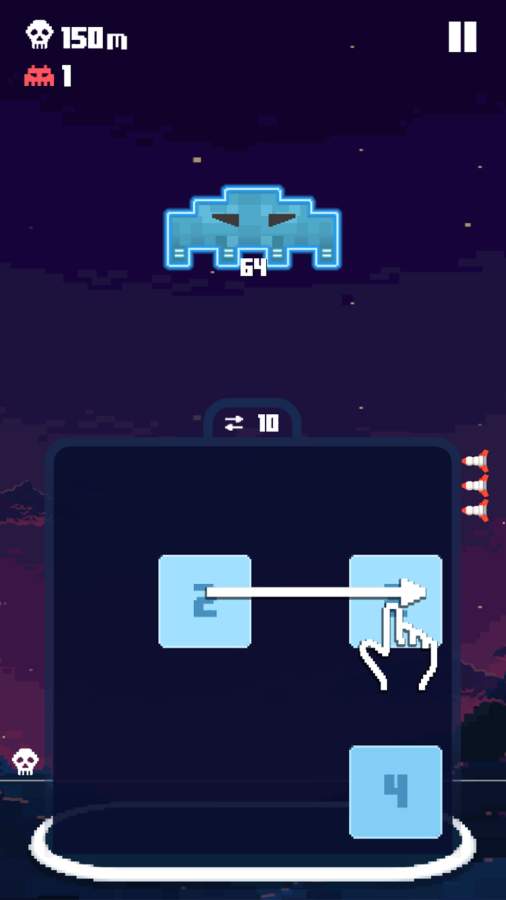 《侵略者2048(Invaders 2048)》是一个很有趣的合并游戏,这个游戏主要是靠玩家将下降过来的数字进行合并,然后缩小空间,你的砖块的数字会越变越大,数字越大,你得到的分数也就越大,分数兑换金币可以解锁新的道具进行游戏.