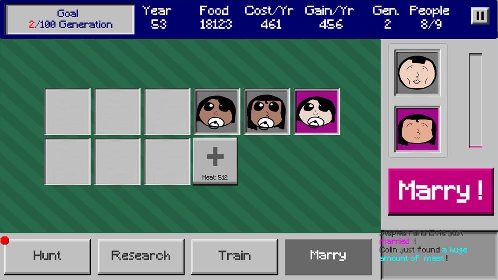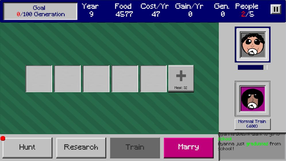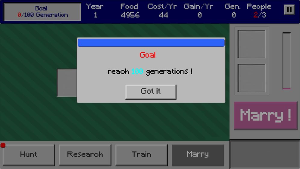 安卓下载 大小:22.47MB 下载:248次 百年家族 益智休闲 支 持:安卓 分 类:手机游戏 大 小:22.47MB 版 本:1.0 下载量:248次 发 布:2022-06-03 20:23:08 特 色:百年家族游戏下载_百年家族安卓版下载 安卓下载 #百年家族截图 #百年家族简介 百年家族是一款全新魔性搞笑的益智休闲游戏,游戏拥有着极简的手绘风美术画面,在游戏中你将要合理的分配好各种资源物品,想尽办法让自己的家族繁衍下去,达到最终的游戏人口目标。游戏特色1、极简魔性的手绘风美术画面,给你不一样的视觉体验。2、简单有趣的游戏玩法,随时随地都可以来上一把。3、轻松舒适的背景音乐和音效,给你沉浸式的游戏体验。4、完善多元化的养成系统,给你前所未有的养成游戏体验。编辑推荐管理并分配好有限的资源让你的家族生存下去。每一轮游戏开始时都会有不同的目标(活到X年,赚取X食物,拥有X人口等)。你需要让自己的家族成员不断繁衍扩大人口生存下去已达到游戏目标。