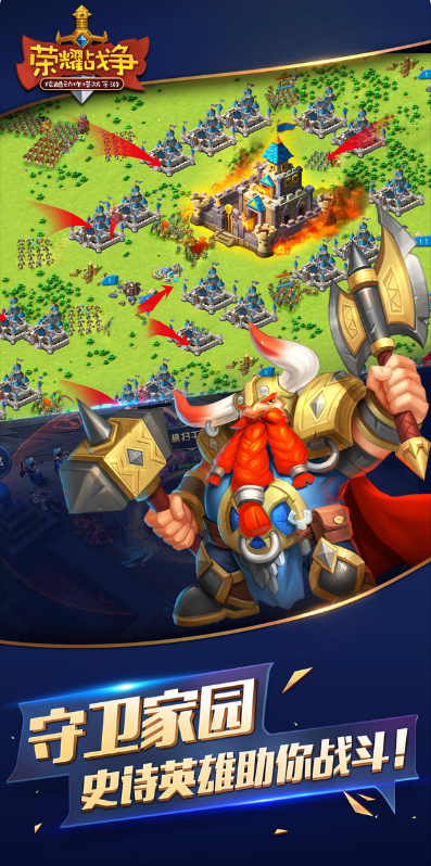 荣耀战争是一款非常受欢迎的策略国战对战手游,游戏拥有着精美细腻得欧美风卡通美术画面,在游戏中你叫要自己建造帝国军团,招募英雄武将,培养你的最强军队,携手小伙伴一起一统天下。