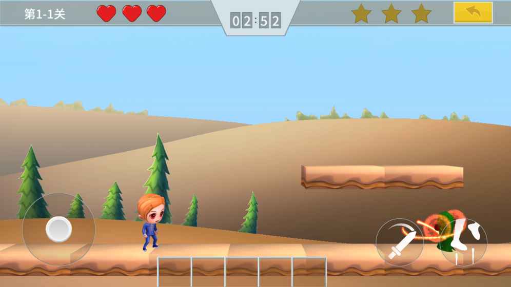 一款以简洁卡通风格打造的横版冒险动作游戏,在游戏中玩家将控制小小的冒险家去冒险,踏过冰原雪山、荒漠草原,游戏还融入了解谜的元素,横版的动作冒险风格会让你唤醒一些回忆,虚拟摇杆按键一幕了然,游戏玩起来十分轻松,快开启你的全新冒险吧。