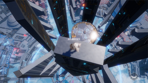 2.这里虽然看着很高,但其实很简单。喷射背包,空中狗爪抓住旁边三个三角形的墙。没有体力了可以在小三角形里面休息一下。