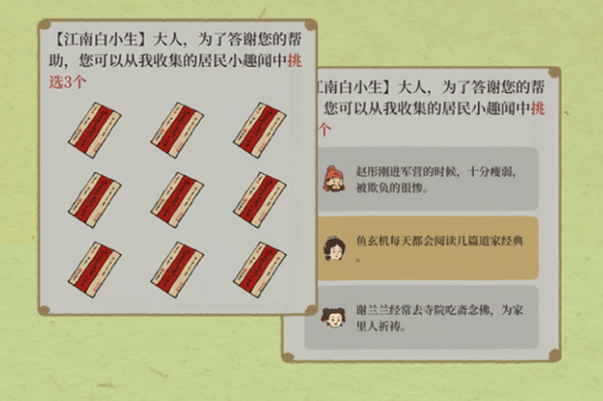 白小生处完成委托后,可以打探到居民趣闻,特殊居民的趣闻会被收录至趣闻图鉴;