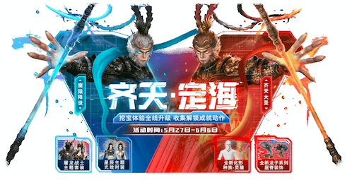 本次齐天·定海主题活动为大家带来勇猛威武的屠龙战士时装、优雅高贵的星辰时装,并首次特别奉上【齐天大圣】与【魔猿降世】两大主题成就套装,旅者们分别集齐两套套装,即可解锁对应的【山海经故事成就】,领取对应的专属头像框、称号,以及专属情绪动作,在山海世界里做美猴王是什么体验,马上就能知晓啦!