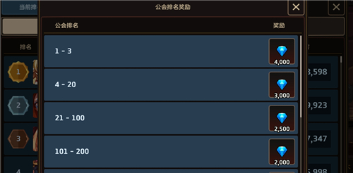 排名奖励当然有还在,是以工会战结束后,你所在的公会总伤害排名计算的。比如你公会排名前三,当天工会战结束后就能拿4000钻石,期间不管你有没有参与过工会战,都能拿到这个钻石奖励,伤害低也能混高奖励。
