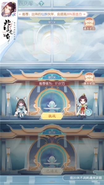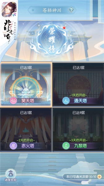在苍梧神川开启的高塔中,仙君大人每日可通关十层,只有挑战成功,才会扣除相应的通关次数。在塔内战斗时,若使用每座塔对应的种族伙伴,则该伙伴将获得一定的属性提升。例如人界通天塔开启之时,仙君大人可多多使用人界伙伴组建队伍,出阵历练,以得到最大程度的属性加成。但同时也要注意队伍内攻守辅助的合理搭配以及修为要求。