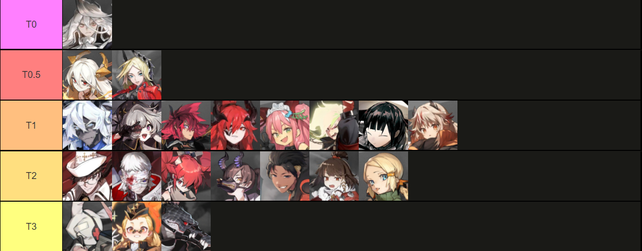 零潜卡莲(Karleen)排在T0.5,如果是一潜的卡莲,则可以排到T0,因为卡莲的一潜为关键潜能,可以让主动技CD减1,和大部分的六星维持同一水准。卡莲本身的伤害并不高,但是功能性非常强,全游独此一家的位移加转色,在各种关卡都能有很好的发挥。