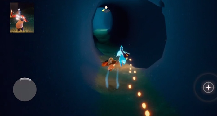 3、点燃白棉裤复刻先祖后他会进入山洞,如果是双人玩家可以正常开门进去,单人玩家可以用矮人遁地的方法进去;