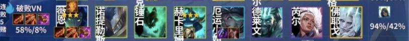 破败VN前期拿到飓风、羊刀后输出基本稳定可以开始吃羁绊效果,第三件装备则是爆发装备完善伤害,优先级法爆>正义>大帽子,光明装备的选择依旧光明法爆作为第一优先级,光明正义可作为备选。女枪则带辅助装备,鸟盾、鬼手、旗子都可以作为选择。而坦度在2费坦卡中猪妹横行的时代,人马也比较容易靠质量升到三星,装备可以选择离子火花、石像鬼、泰坦则是最优选择,龙牙虽然大幅度增强,但是5.5版本物理多余法术伤害,不是很推荐;升八后可以先用寒冰凑一个游侠羁绊,增加VN的输出强度,有佛爷哥后可以给一个狂徒增加跳到后排策反C的容错率,不至于跳进去就暴毙了。而佛爷哥二星后跳到C也有意想不到的效果,手游的双人中也能做一下靠特殊妮蔻升三的佛爷哥的梦了。