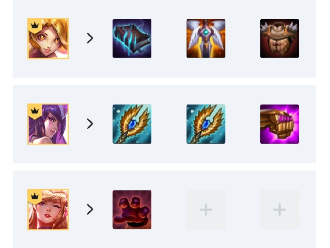辛德拉为主C,对炽天使需求很高,一般带俩,辛德拉装备外多余的法强装给副C阿狸,或者就直接拳套,防装、鬼书、离子火花给妮蔻就好。