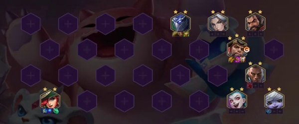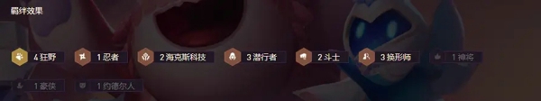 纯暴力输出阵容,脆皮噩梦,4狂野给全员增加攻速且普攻必定命中,北境之傲与离群之刺就能打出极高伤害,快速秒杀敌方脆皮,而皮城执法官、狻猊之心、未来守护者与海上幽影4大及其强势的控制能稳定形成控制链链,给北境之傲与离群之刺争取足够的输出时间,快速收割敌方。