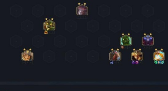 1、首先我们考虑棋子,具体的棋子搭配推荐是:狗熊,火男,努努,艾翁,拉克丝,稻草人,辛德拉,大眼和格温,总共9人口的消耗;