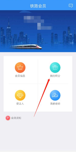 点击【我的积分】,查看会员积分。100积分相当于1元人民币,核算会员积分能兑换的车票。