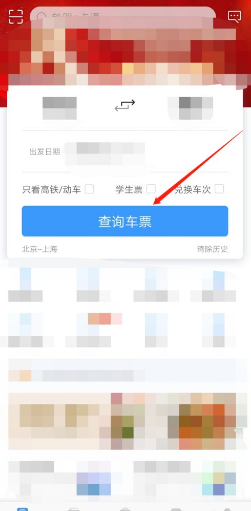 返回【首页】,根据行程点击【查询车票】。