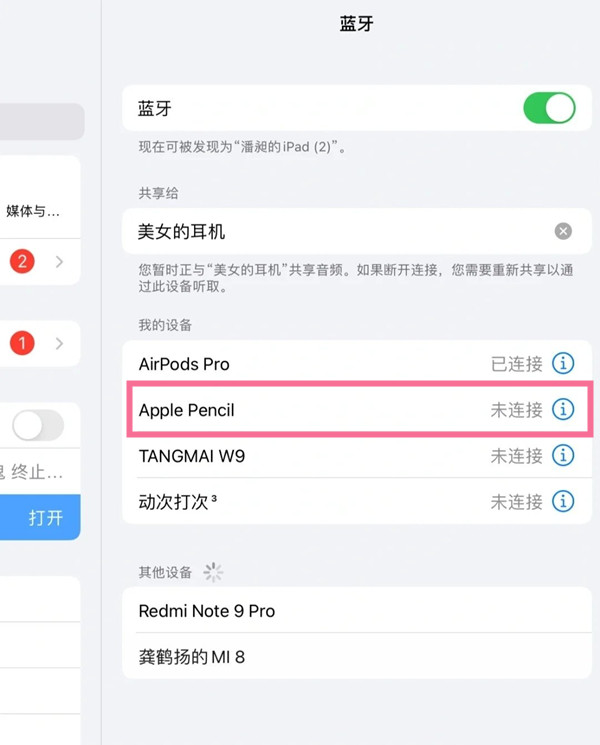 2、打开iPad蓝牙,在蓝牙列表中点击Apple Pencil 2设备名称即可连接。