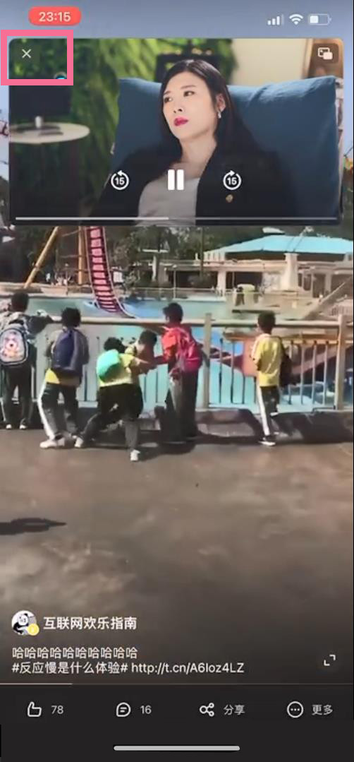 2、点击左上角的【x】图标即可关闭小窗播放窗口。