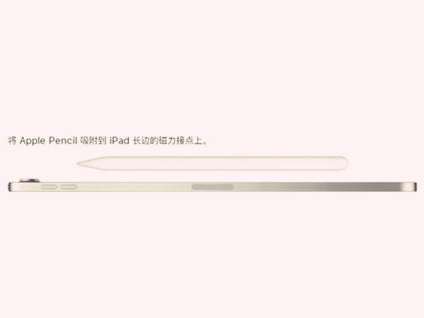 1、将Apple Pencil吸附到iPad长边的磁力接点上。
